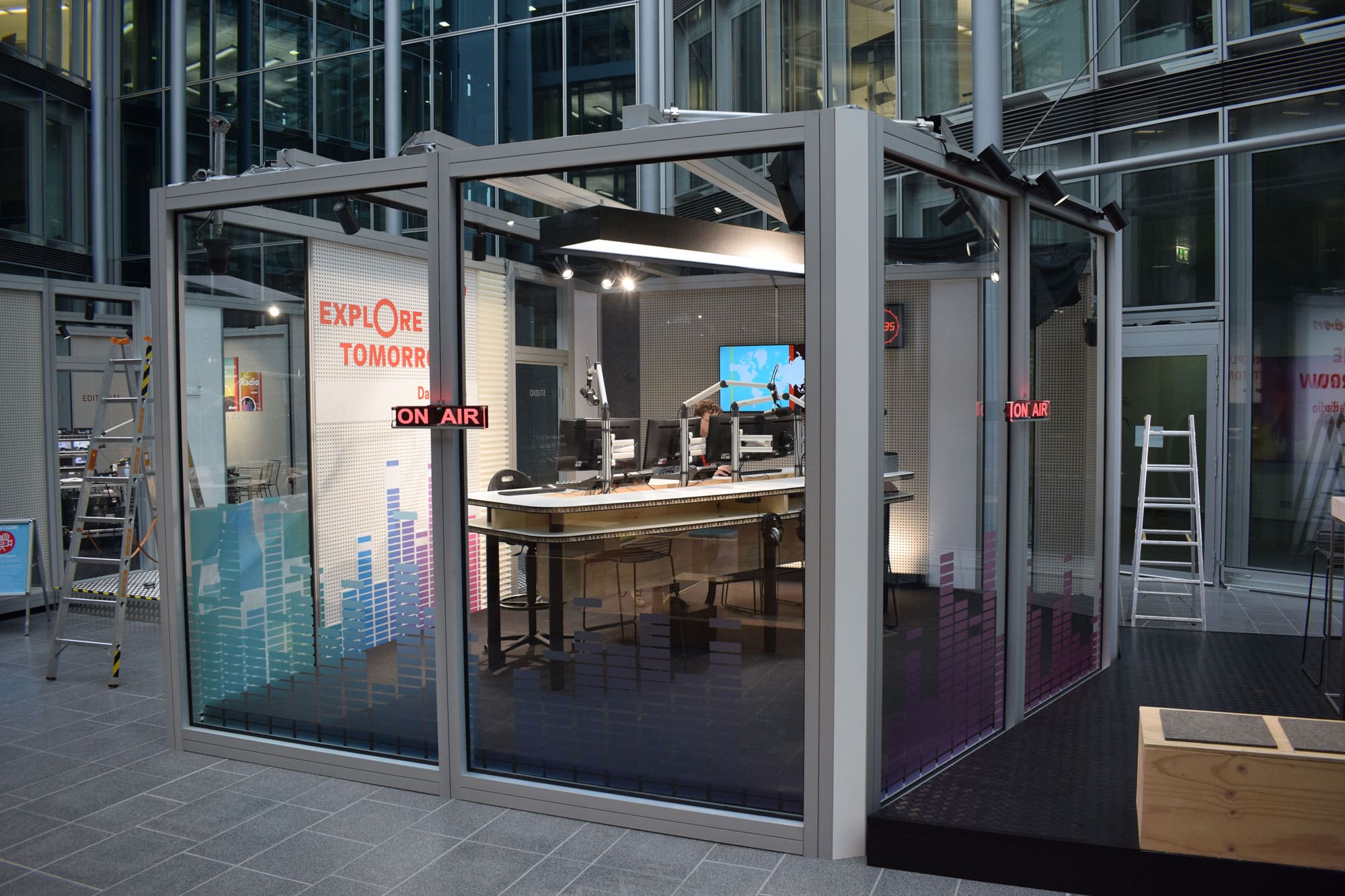 Auf vielen Veranstaltungen gestalten wir nicht nur die Bühne, sondern sorgen auch dafür, dass Dolmetscherkabinen, Rednerpulte und Counter im Corporate Design (CI) des Veranstalters ein stimmiges und professionelles Gesamtbild abgeben. Mit individuell gestalteten Hintergründen und gebrandeten Kabinen setzen wir auch in der Dolmetschertechnik ästhetische Akzente.